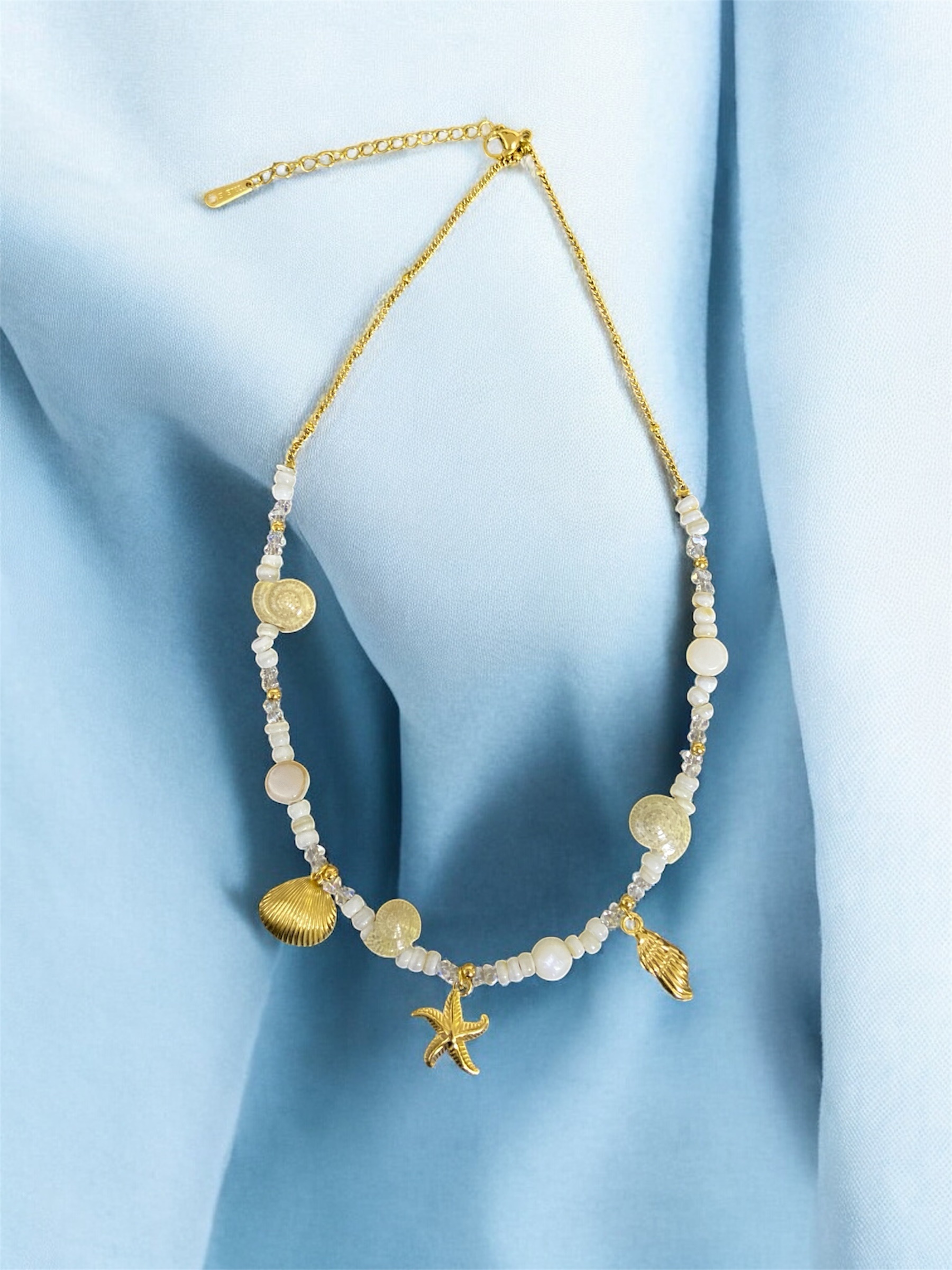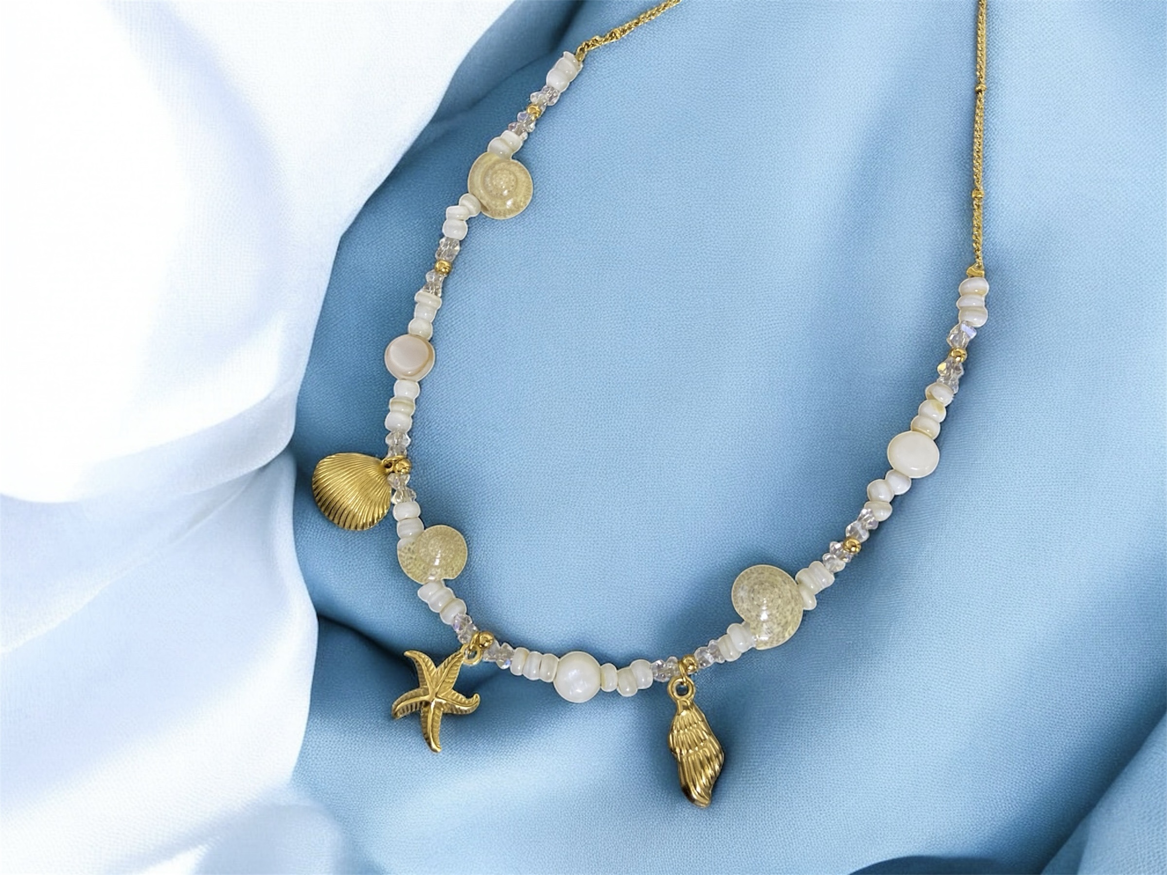 Discover the Beach Vibes Necklace — a stunning mix of beige beads, shells, and a gold chain. This adjustable, waterproof, and anti-tarnish design is skin-friendly and perfect for adding a touch of coastal charm to every vacation look.