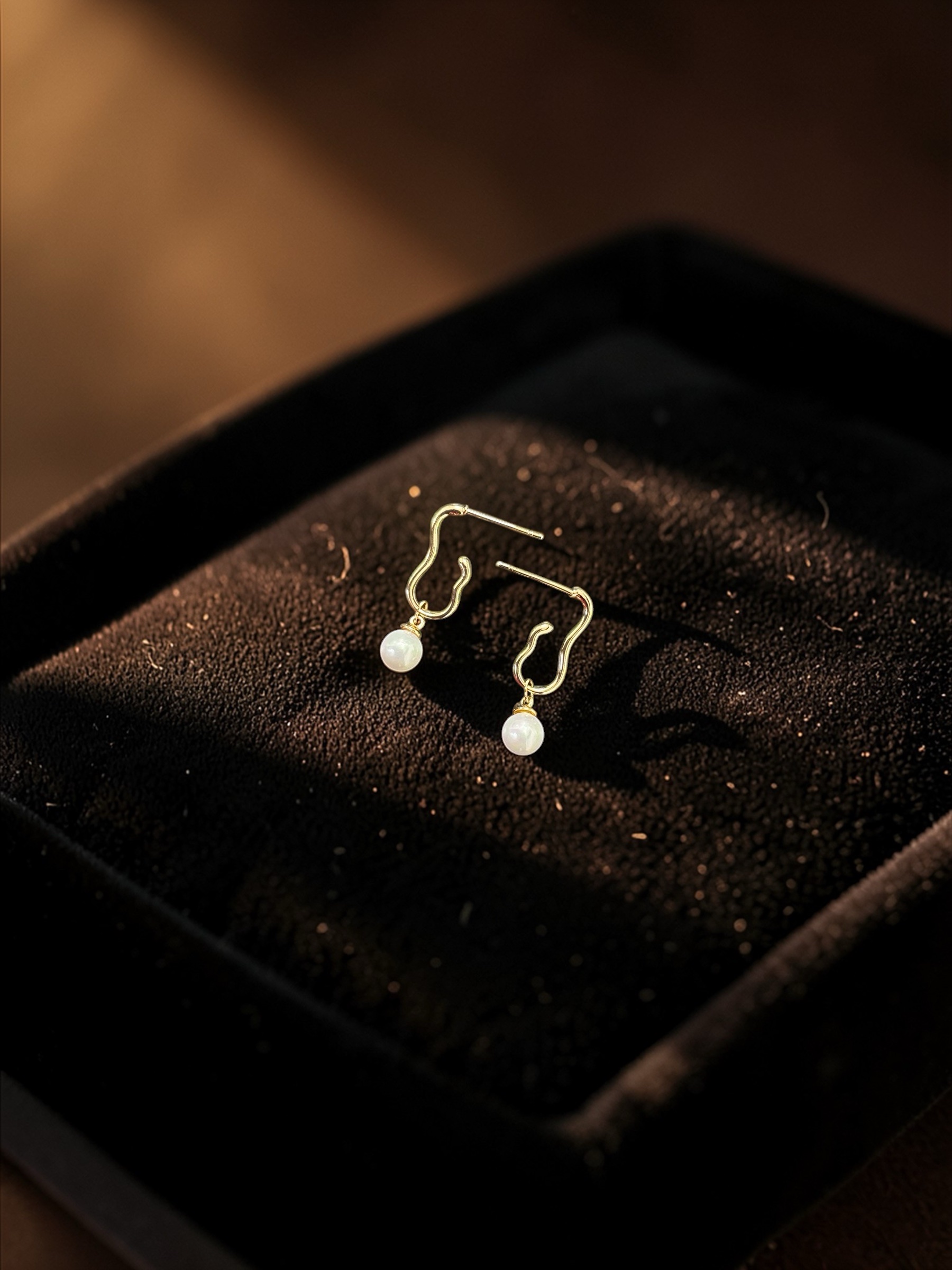 + ShippingAbstract gold shape earrings with a pearl drop. Gold plated, skin-friendly, anti-tarnish, waterproof, super lightweight and perfect for daily wear or any occasion.