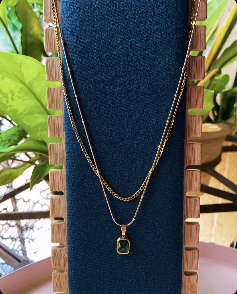 + ShippingOur Green Emerald Layered Necklace is a masterpiece that balances subtle charm with a bold statement. Designed with a rich green stone pendant on a minimal layered gold chain, it brings instant sophistication and a touch of luxury to any outfit.