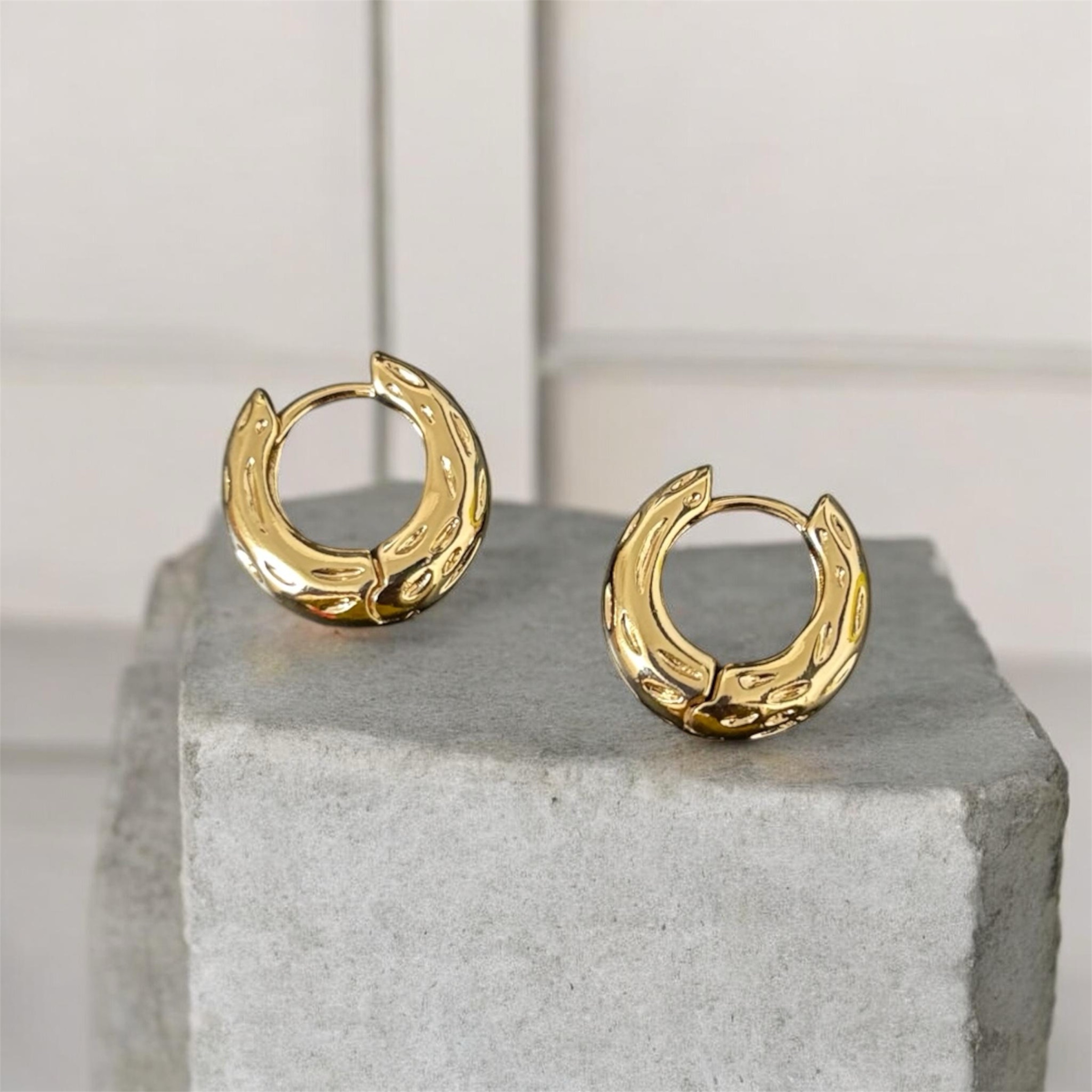 + ShippingAdd a bold yet minimal touch to your everyday look with these gold textured chunky hoop earrings. Designed with a unique hammered texture, these hoops are lightweight, waterproof, and anti-tarnish, making them perfect for daily wear. Their modern chunky style pairs effortlessly with both casual and dressy outfits, giving you a polished look in seconds.