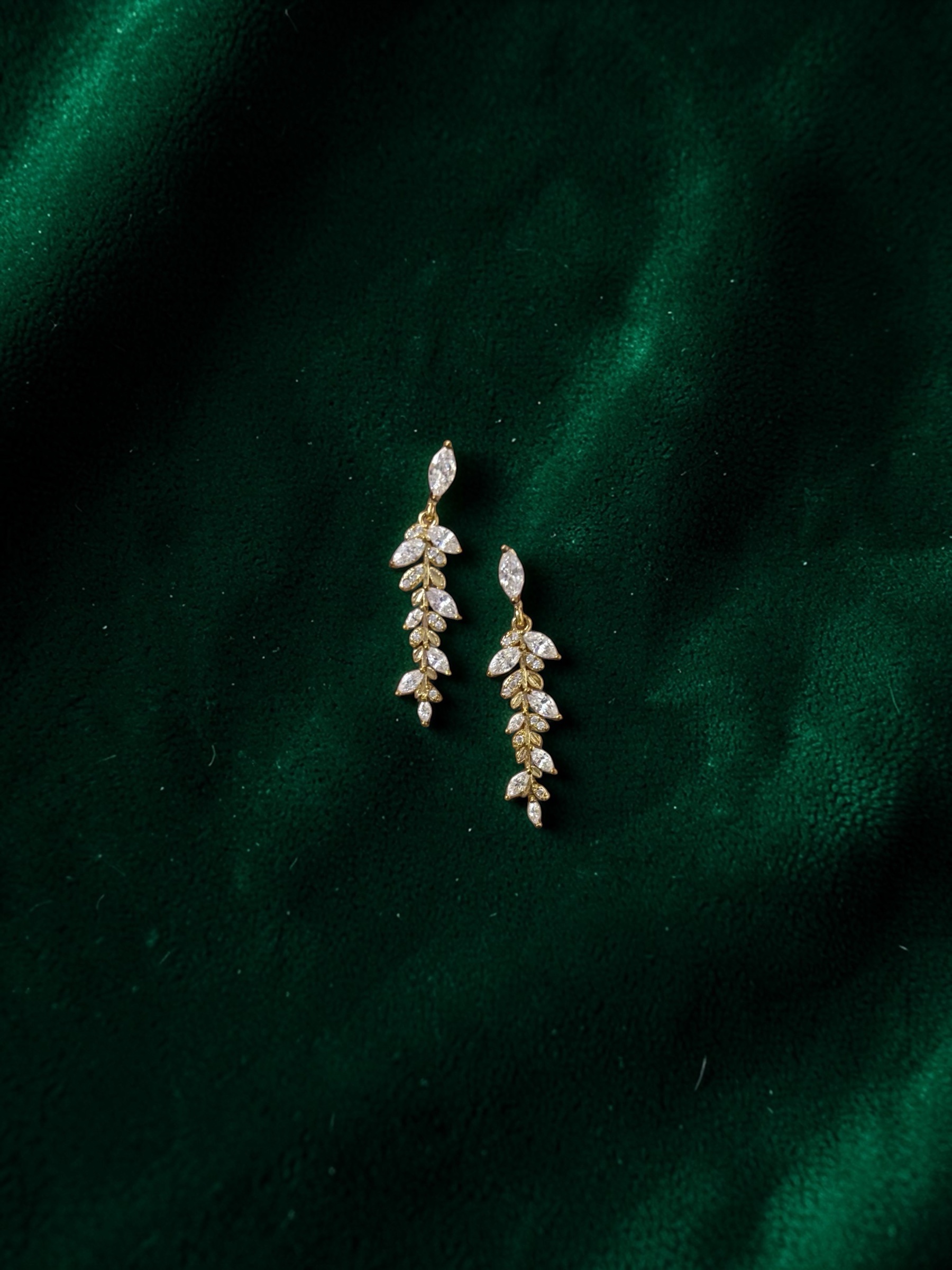 Leaf veil style dangling earrings with a sleek, flowing design. Anti-tarnish, premium quality and perfect for any occasion.