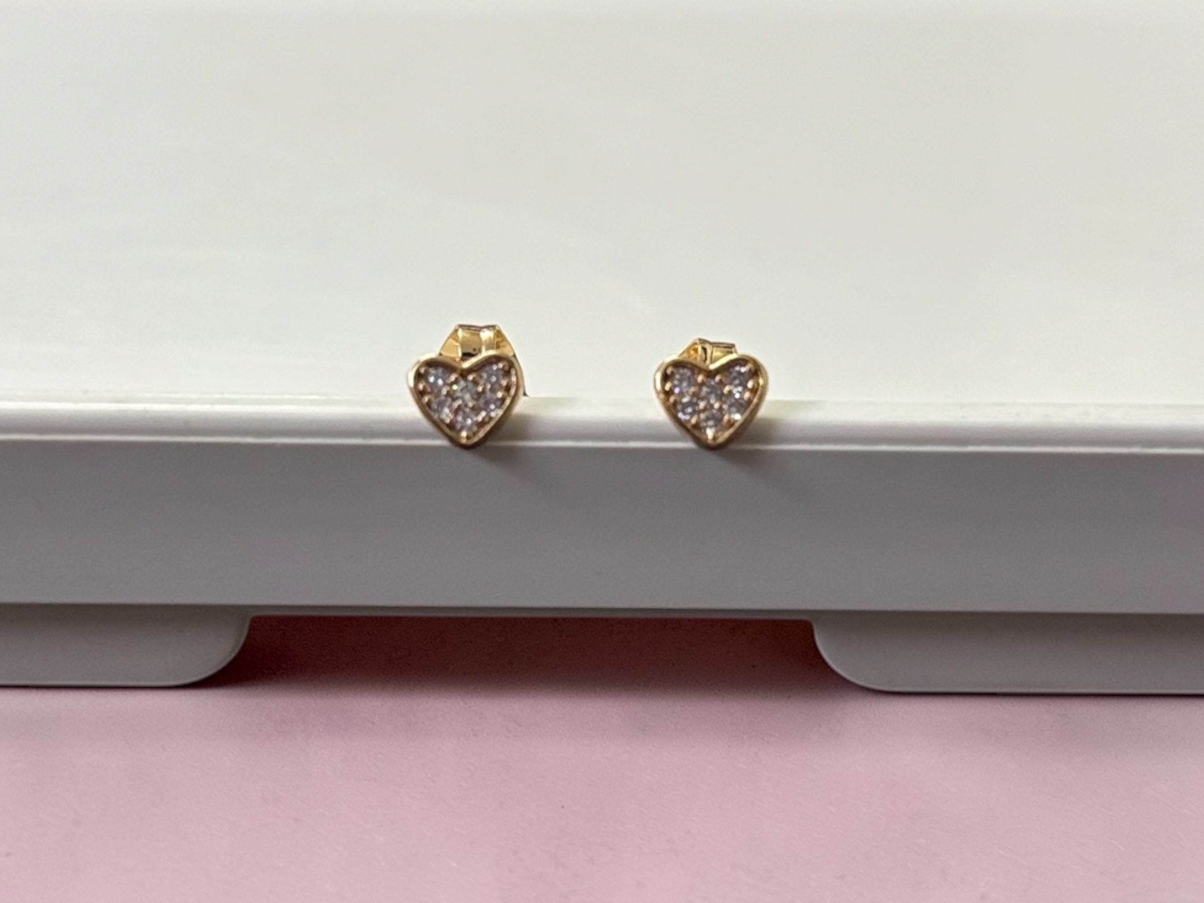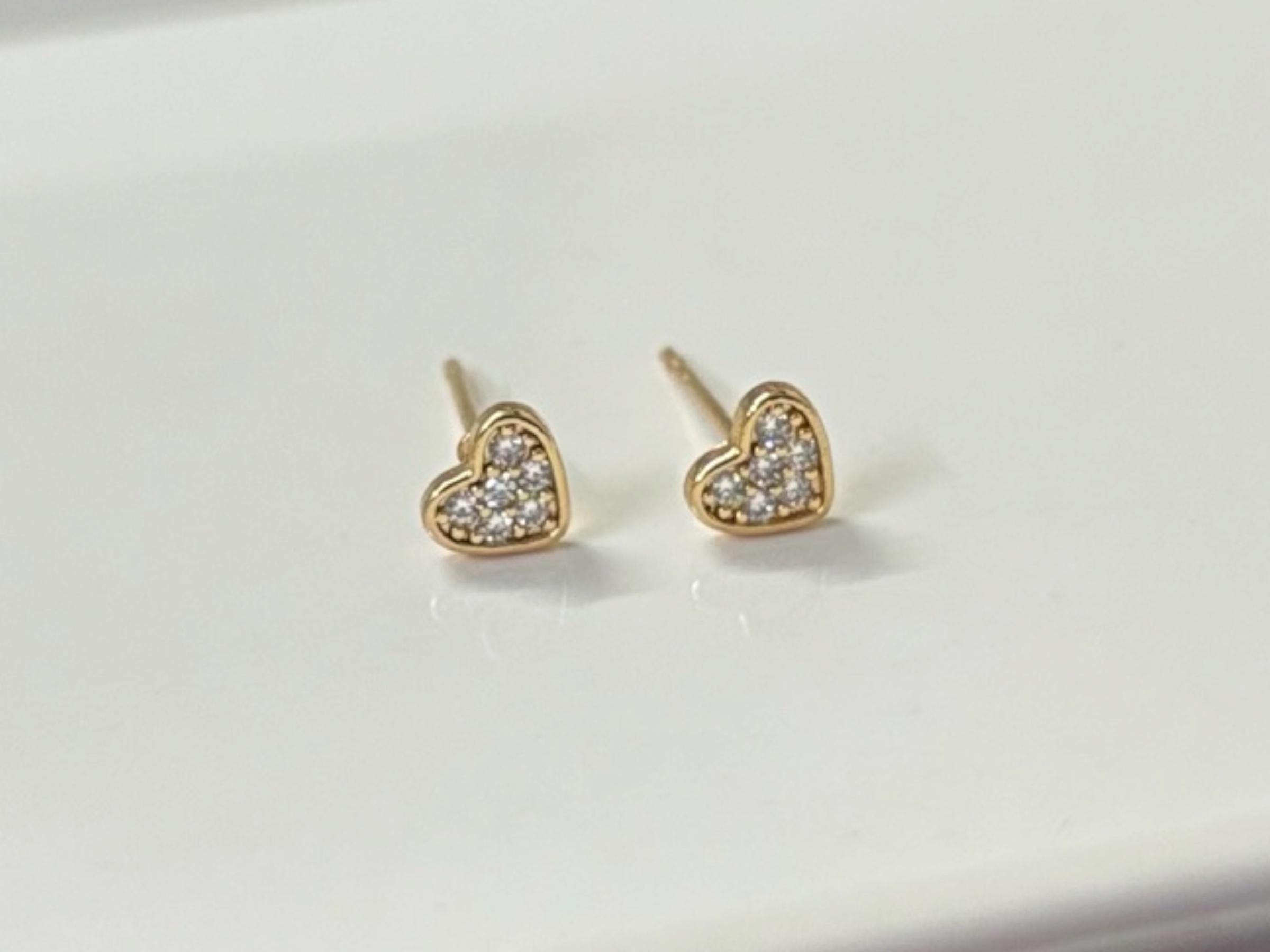 + ShippingMini heart stud earrings with diamond detailing. Skin-friendly, anti-tarnish, waterproof and perfect for daily wear and upper piercing.