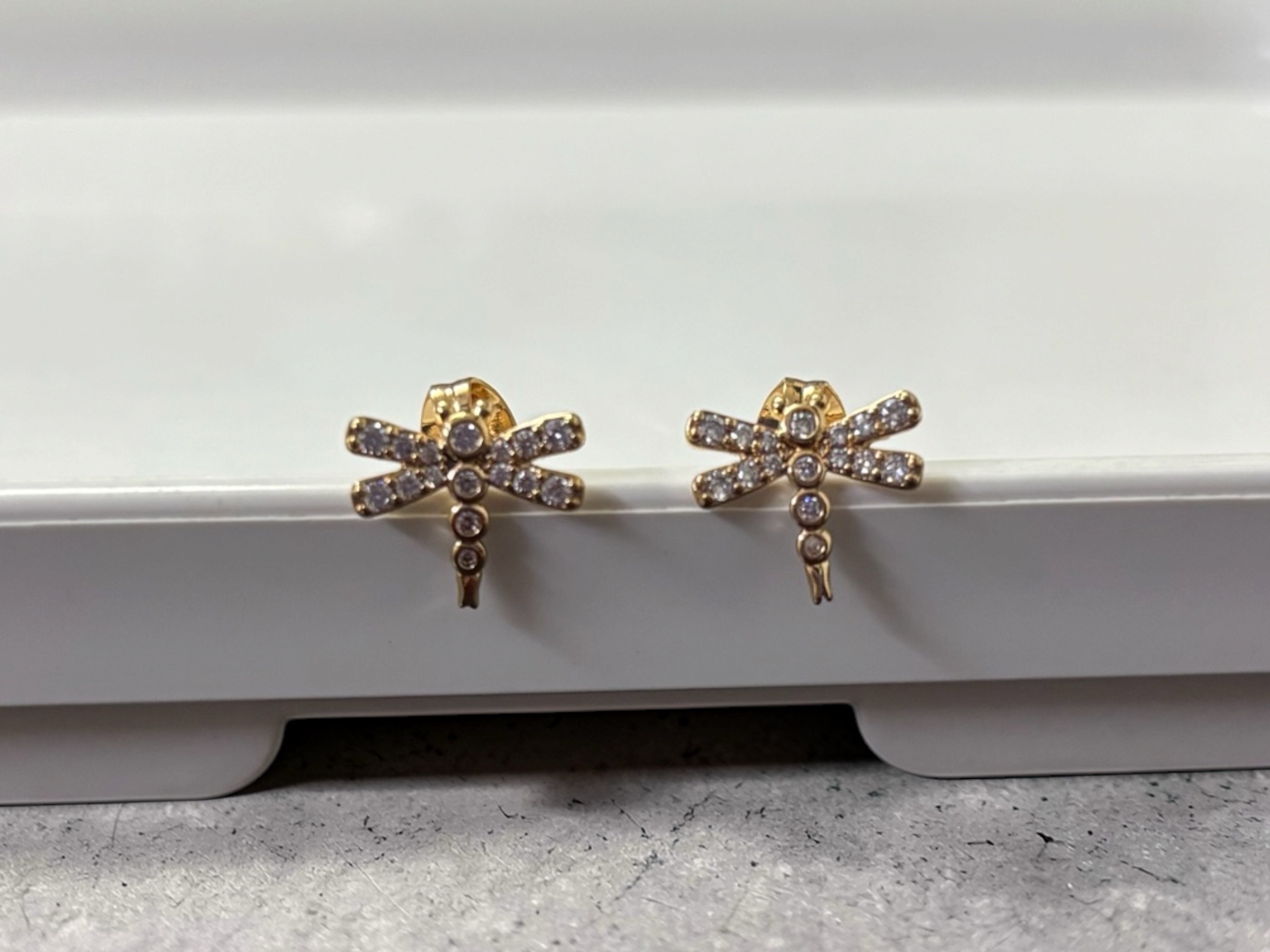 + ShippingDragonfly stud earrings with diamond detailing in rose gold finish. Skin-friendly, waterproof, anti-tarnish and perfect for daily wear and any occasion.