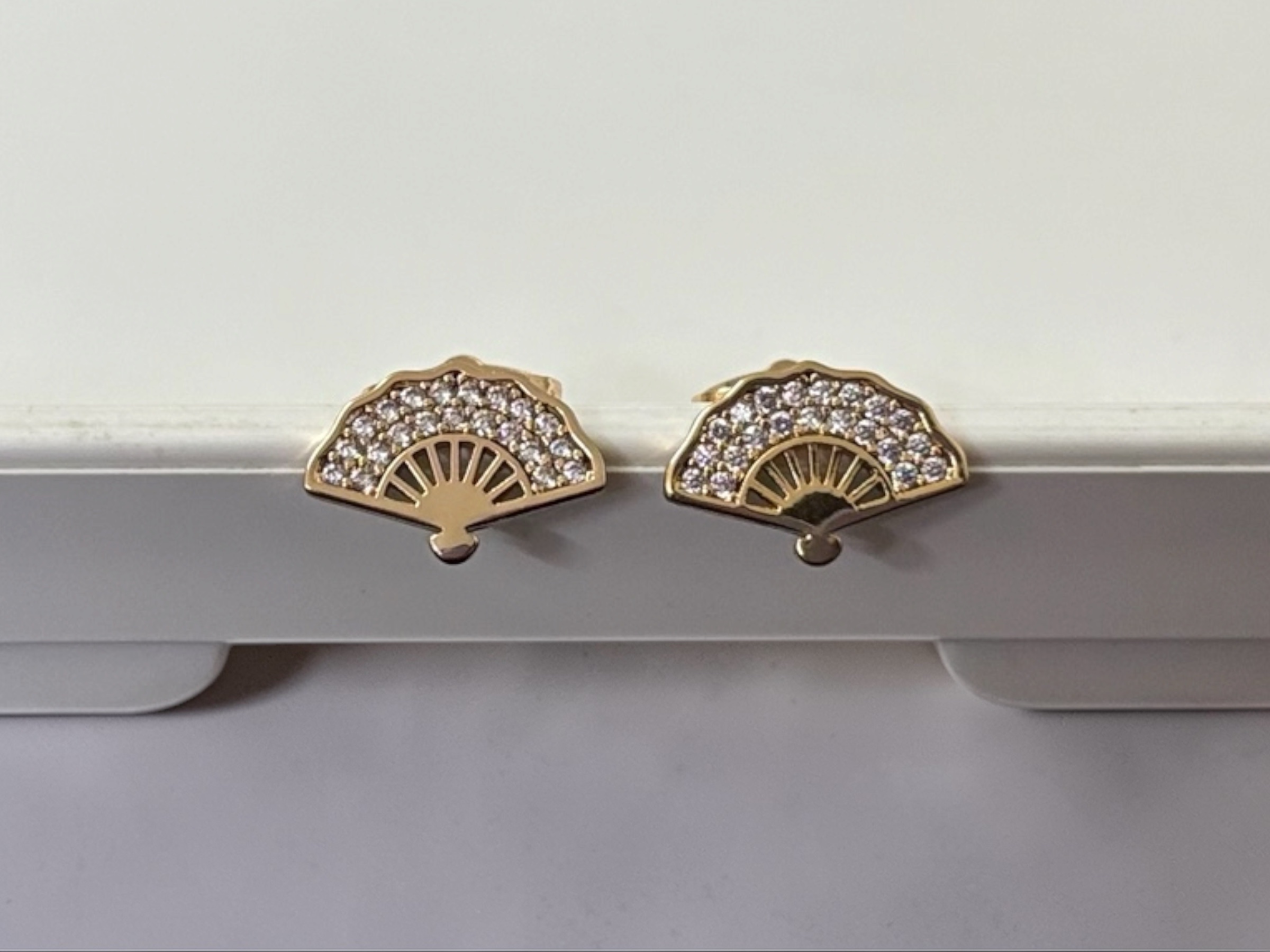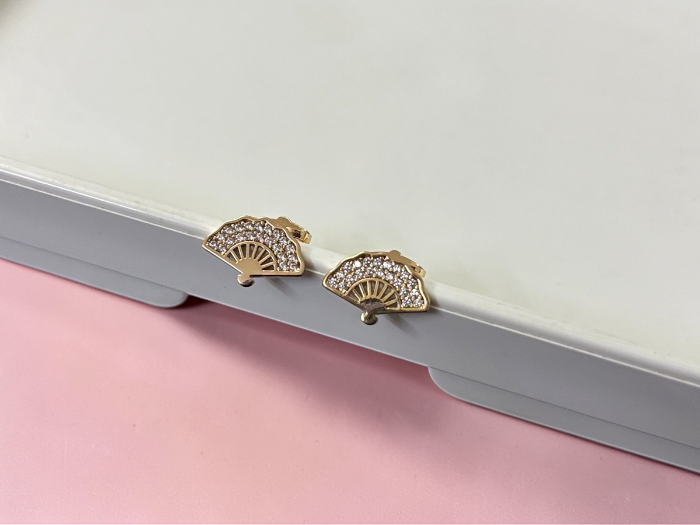 + ShippingFan shape stud earrings with diamond detailing in rose gold finish. Gold plated, skin-friendly, anti-tarnish, waterproof and perfect for daily wear.